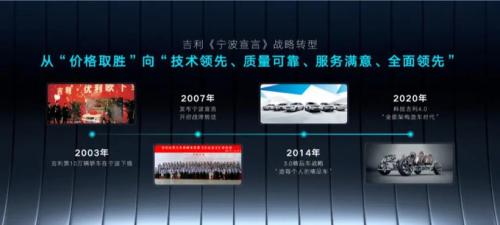 一句句非常有目标、有想法、掷地有声的话语,在混乱和暗战的汽车竞争中,指引着吉利朝着正确的方向前行,而从“低价战略”向“技术领先、质量可靠、服务满意、全面领先”战略转型和主导思想,由此也奠定了吉利之后十年高速的发展新时代。