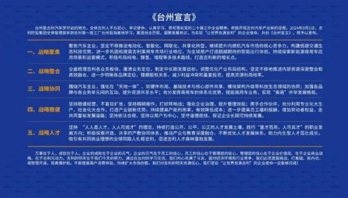 如果说17年前的《宁波宣言》是吉利从1.0时代迈向2.0时代的转折点,并由此奠定了吉利3.0时代的飞速发展和4.0时代的技术领先性。那么当前的《台州宣言》,就是吉利面对新能源和智能化时代,面对极致内卷的汽车行业,给出的最优解决方案。
