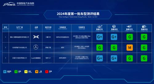 IVISTA中国智能汽车指数2024年第一批次测评结果概览