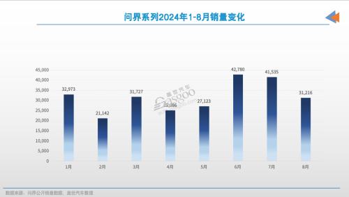 这一预测很快得到了验证。问界系列不负众望,在6月和7月连续两个月突破4万辆大关,实现了月度销量目标。然而,市场风云突变,问界8月销量回落至3万辆,环比骤减万辆。