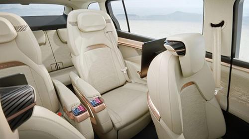 内饰方面,新车拥有较强的科技感,双幅式方向盘采用双色设计,配备液晶仪表和HUD抬头显示,中控屏贯穿至副驾一侧,能够满足娱乐需求。同时,新车前排采用悬浮式岛台设计,杯架设计很巧妙,但手机储物槽位置设计不是很合理。座椅布局方面,新车提供6座和7座两种可选,第二排座椅十分宽厚,并配备手机无线充电面板,前排座椅靠背还配有Pad插槽,丰富后排乘客娱乐体验。