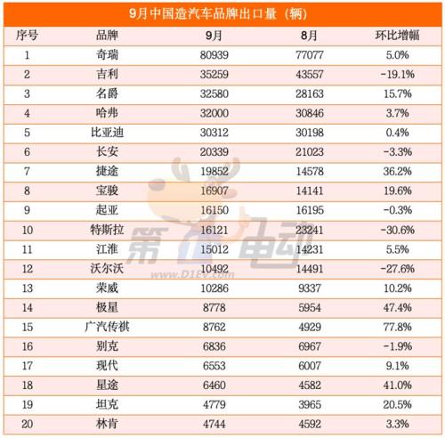 相反,博越L、瑞虎8、瑞虎3x、昂科威和缤越出口量环比均出现下滑,其中曾在8月位居第二的博越L出口量环比大降45%,排名下降至第12。