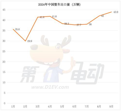 根据易车公布的中国造汽车出口量数据,9月中国汽车(包含商用车)出口量达到43.9万辆,环比上涨4.5%,同比上涨22.2%。1-9月中国汽车出口量达到348.6万辆,同比上涨30%。
