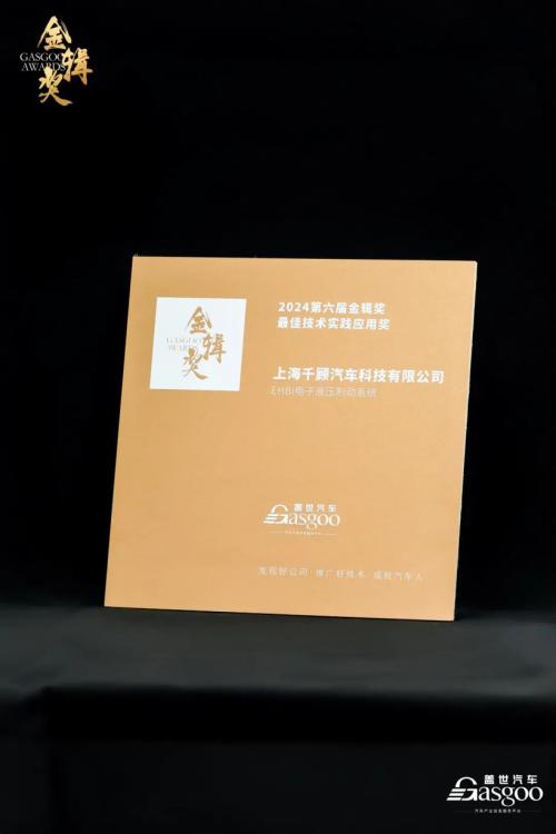 2024年10月24日,由盖世汽车主办的第六届“金辑奖”颁奖盛典圆满落幕。千顾科技凭借其在线控制动领域中卓越的技术实力和领先的市场表现,荣获2024金辑奖“最佳技术实践应用奖”。