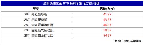 中国汽车新闻网讯7月18日,凯迪拉克全新车型XT6正式上市,此次上市共推出5款车型,售价区间为41.97-54.97万元。新车搭载一台2.0T发动机,最大马力241匹,同时配备了四驱系统。