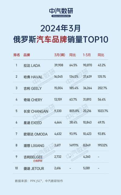 中国汽车品牌在俄罗斯汽车市场占有十分可观的“一席之地”自不必多说,令人感到意外的是,一直对整车出海持保守态度的理想,却出现在了中汽数研统计的2024年3月俄罗斯汽车销量榜单中。