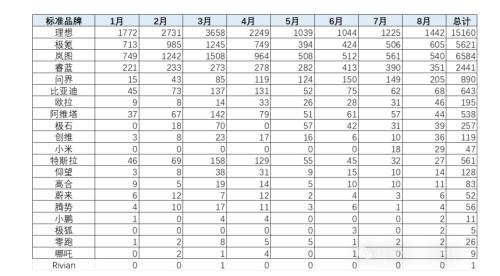 新能源车中表现比较突出的是理想、极氪、岚图等品牌,这些品牌表现相对是极强的特征。