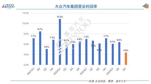 日前,大众汽车集团公布了第三季度财报,营业利润同比大跌42%至28.6亿欧元;营业利润率下降至仅3.6%,为四年多来的最低水平。