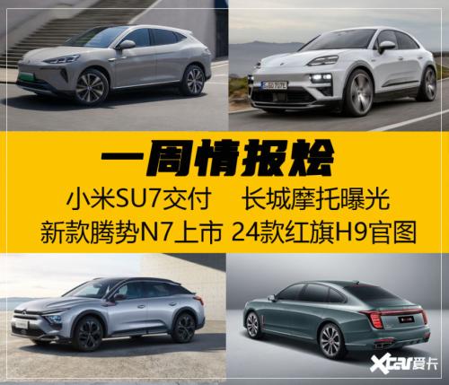 本周有哪些新车和行业新闻得我们关注?4月1日,新款腾势N7正式上市,新车共推出四款配置车型,售价区间23.98-32.98万元。4月3日,小米汽车雷军在个人社交媒体上宣布小米SU7正式开启交付,并配文:“今天非常开心,亲自把车交给了我们首批车主! ”在保时捷纯电动Macan科技生态体验日上,保时捷公布了旗下全新纯电动Macan的具体技术参数以及上市日程。红旗品牌正式发布了2024款H9的官方图片,展示了该车型在外观上的细微调整。长城首款摩托车曝光,长城的这款水平对置八缸发动机摩托车整体呈现出典型的巡航车型态。贾鸣镝博士将接替即将退休的朱梅君女士,担任林肯中国总裁一职。以下来看具体报道。
