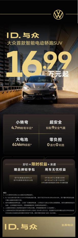 作为大众旗下的全新品类,ID.与众的推出无疑是一次创新尝试,这次降价就是对市场反馈的快速调整。随着政策的深入传播和市场认知的不断提升,ID.与众将有更多的机会在未来的竞争中脱颖而出。