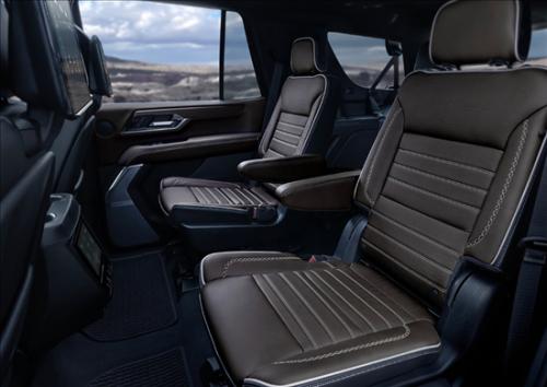 新车为全尺寸SUV,其大量采用了高大且硬朗的美学理念,彰显出美系全尺寸SUV所独有的磅礴气势。其前脸装配了一副大尺寸的中网,两侧则嵌入了矩阵式GMC Precision LED大灯组,与C字形LED日间行车灯相辅相成,科技感浓郁。
