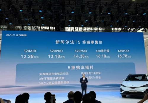 11月15日,极狐阿尔法T5在广州车展上正式上市。此次上市共推出了五款精心打造的车型,价格区间精准定位在15.58万元至19.98万元之间,而面向消费者的终端零售价则更为亲民,介于12.38万元到16.78万元。阿尔法T5全系标配了来自宁德时代的优质电池,续航里程高达660公里,为用户提供了无忧的出行保障。