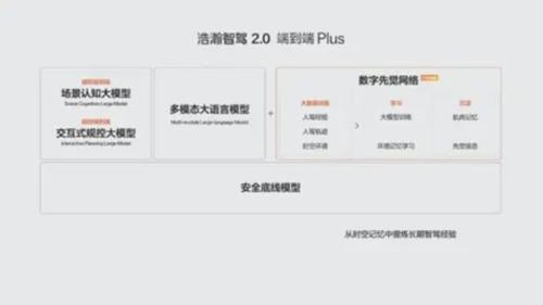 此外,MLM多模态大语言模型及安全底线模型也为端到端Plus架构提供了坚实的支撑。MLM不仅能够认知复杂的交通场景,还具备物理世界的通识,相当于人类在面对复杂场景时的有意识思考和推理能力。安全底线模型则能够及时介入,纠正错误的输出结果或决策建议,确保系统的正常运行。