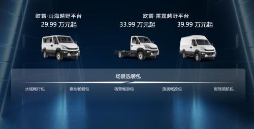 目前,依维柯4X4系列产品已正式发售,其中欧霸*山海越野平台,售价29.99万元起;欧霸*雷霆越野平台,售价33.99万元起。