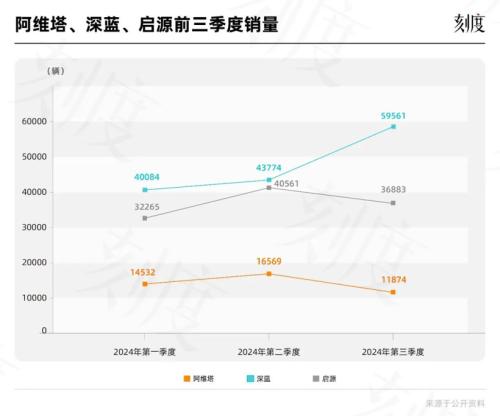 但事实却是,损益如此之大的深蓝汽车并未能给长安带来如期的贡献,今年前三季度,深蓝汽车累计卖出了14.3万辆,刚完成全年销量目标的一半。不只是深蓝,长安新能源的另外两大品牌阿维塔和启源的销量离今年的目标都还很远,前者仅完成45%,后者则是50%。