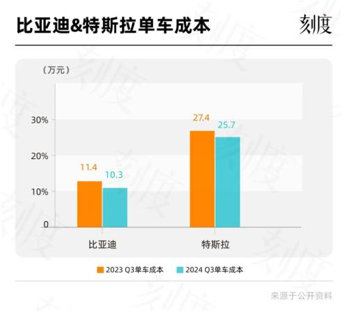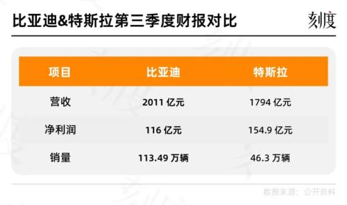 无论是比亚迪还是特斯拉,虽然还有些其他相关业务,但作为车企,汽车收入还是整体营收的大头,单车利润对他们来说是一个非常重要的指标,根据第三季度财报数据算下来,比亚迪每卖一辆车能赚1万多,而特斯拉则能赚3.3万多。