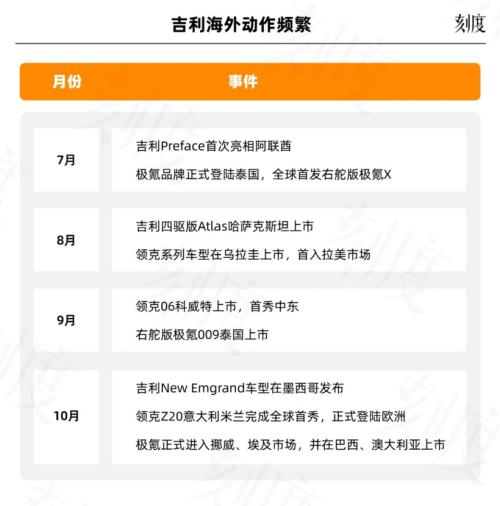和好成绩相伴而随的便是吉利紧锣密鼓般的出海动作,相信随着集团内部资源的不断整合,吉利在第四季度的各项数字还会逐步攀升。