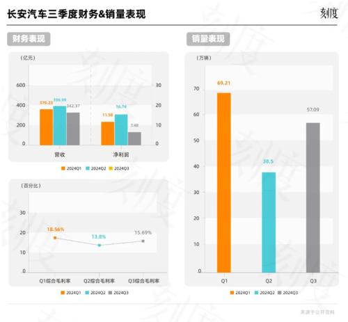 如果单从第三季度来看,长安汽车的成绩更是不好看,营收和净利润都出现了下降:营收342.37亿元,同比下降19.85%;净利润7.48亿元,同比下降66.44%。