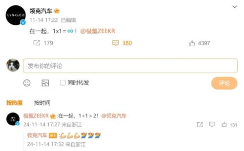 尽管二者在微博上大秀恩爱,但以极氪持有领克51%股份的方式进行合并,还是让不少领克车主颇感意外。