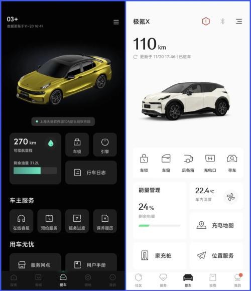 所以今天就让我们先来看看,目前极氪和领克的APP在使用体验上有何不同。