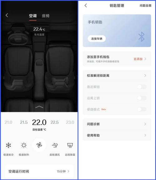 此外,通过极氪APP还可以绑定手机蓝牙钥匙,上车之后可以直接启动车辆,十分方便。