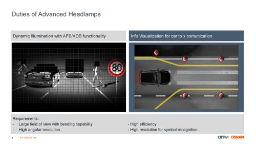 这正是艾迈斯欧司朗EVIYOS® 2.0前照灯解决方案带来的全新体验。罗理介绍指出,EVIYOS® 2.0是业界第一款光与电子相结合的LED,在仅有40mm²的曲光面上,却“压缩”了令人惊叹的25,600个像素,且每个仅微米级的像素点均可独立寻址开关,实现极为精细的照明控制,引领行业发展。
