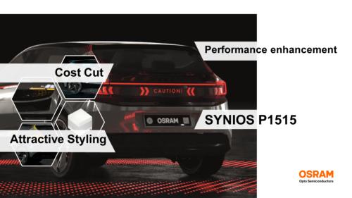 在汽车设计的舞台上,尾灯/信号灯越来越追求轻量化、紧凑化、降本增效,以及具有类OLED效果、拥有简单信息交流功能、且更富有吸引力的造型。艾迈斯欧司朗SYNIOS® P1515,以其独特的侧发光、360°辐射特性,为汽车照明带来了结构创新。