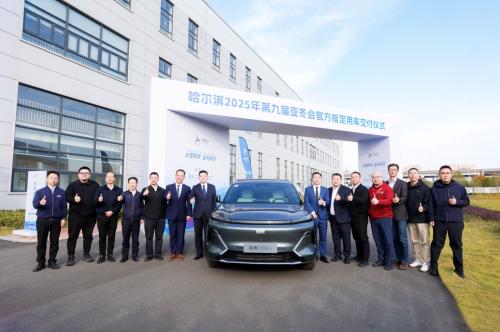 12月17日,在浙江台州吉利卫星超级工厂,吉利控股集团举办了哈尔滨2025年第九届亚冬会官方指定用车交付仪式。