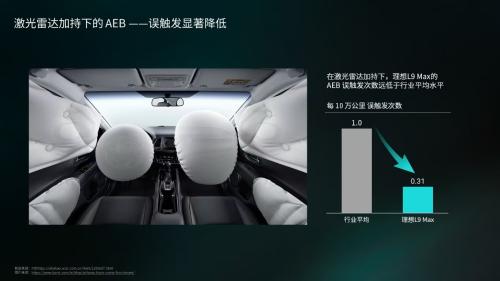 根据理想汽车的公开数据,理想L9 Max的AEB误触发率低于主流行业标准近3倍。在这其中,激光雷达作为一个安全件,发挥的核心作用之一就是提升AEB的能力,增加安全性同时能够显著的降低误触发概率。