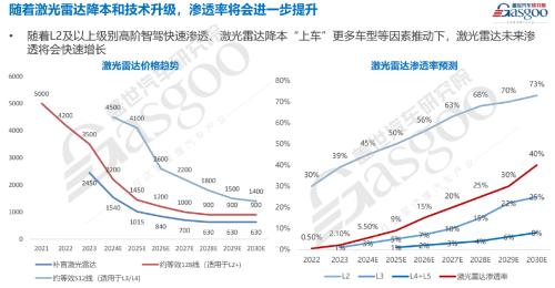 盖世汽车研究院认为,随着L2及以上级别高阶智驾快速渗透,激光雷达成本下降在更多车型上搭载上车,其未来渗透率会快速增长,在2030年,可能会增加至40%左右。
