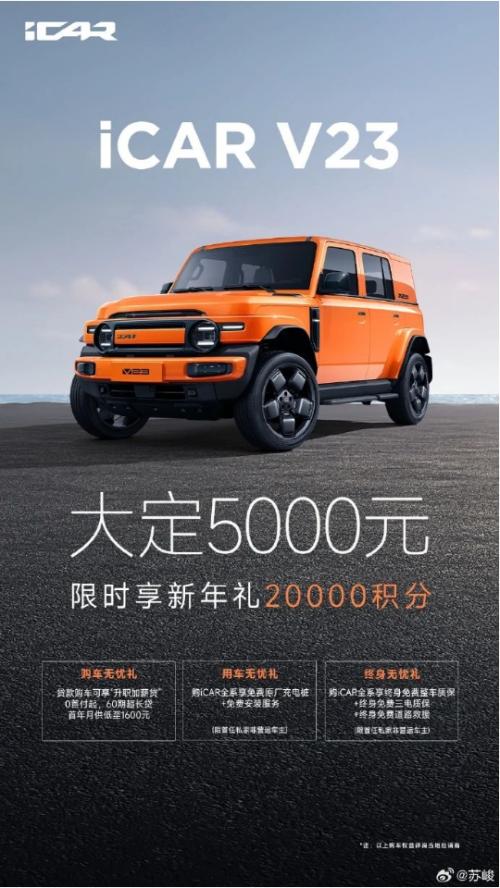 2025年新年伊始,iCAR APP还正式上线了V23限时新年礼活动。即刻开始,用户只需在iCAR APP上支付5000元下定,即可获得20000积分。这些积分用途多样,既可用于兑换商城中的精品好物,也可以选择兑换2000元置换补贴,或者2000元金融补贴,用法灵活,满足用户的不同需求。这一优惠活动将持续到2月28日,让用户在购车过程中享受更多实惠。此外,iCAR后台将直接为用户充值到位,无需经销商操作,确保每一位用户都能享受到这份新年的专属礼遇。