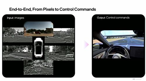 在该案例中,通过11个摄像头(7个长距摄像头和4个泊车摄像头)采集的像素信息输入到转换器,实现从图像到控制指令输出的端到端过程。
