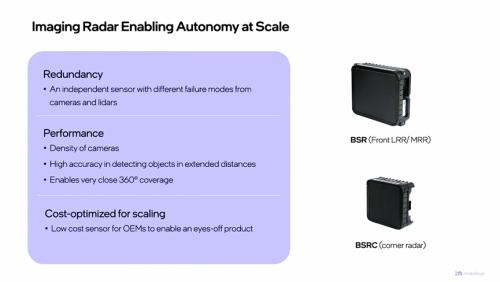 而在成本方面,Mobileye的4D成像雷达也展现出了较强的市场竞争力。Shashua教授透露道,构建一个由一个BSR(前向长距/中距雷达)和四个BSRC(角雷达)组成的360°感知系统的总成本能够控制在1000美元以内。