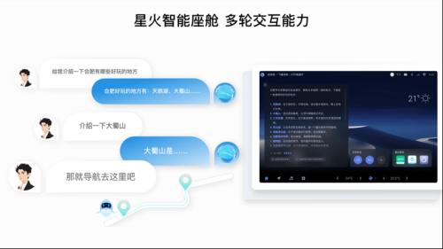 科大讯飞的星火智能座舱基于星火大模型底座,集成了包括多麦克风阵列降噪、多语种识别、多语种合成、AIUI对话式交互、音频音效AI处理在内的多项行业领先技术,实现了汽车的“能听会说”。通过融合生物识别及认证、机器视觉处理、图像识别、自然语言理解、机器翻译,并结合大数据及云计算等技术,让汽车“能理解会思考”。另外,讯飞星火大模型是国内领先的自主可控大模型,基于全国首个国产万卡算力集群“飞星一号”训练,模型能力全面对标GPT-4 Turbo,并在文本生成、语言理解、知识问答、逻辑推理、数学能力等方面实现超越。