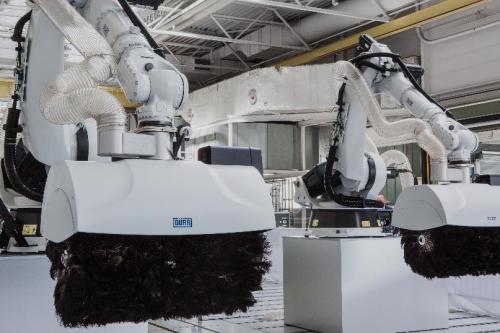 涂装线将使用杜尔最新的EcoRP系列喷涂机器人,有六轴和七轴两种型号,可用于内部和外部喷涂。七轴机器人为内部喷漆提供了高精度和灵活性,甚至可以到达车身最难进入的区域。六轴机器人将负责外部喷漆。此外,杜尔还提供相应的开门盖机器人,作为喷漆过程的额外辅助工具。