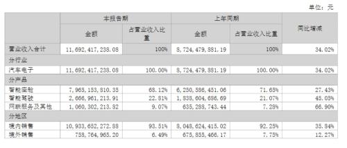 不过,期内德赛西威智能驾驶和网联服务两大板块业务营收虽然远不及智能座舱,但增长势头较好。其中智能驾驶业务上半年营收同比上涨45.05%,营收占比达到22.81%,2023年上半年为21.07%;网联服务及其他业务营收占比也提升到了9.07%,2023年上半年为7.28%。