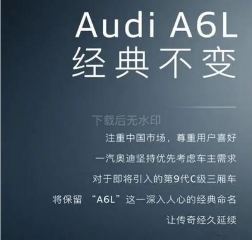 值得注意的是,在去年10月份,一汽奥迪官方就宣布未来将引入的第九代A6三厢轿车,在国内市场将继续沿用奥迪A6L这一备受认可的命名。这一举措不仅彰显了奥迪品牌对中国市场的深入了解与重视,也预示着A6系列在国内的辉煌传承将得以延续。与此同时,一汽奥迪还透露,这款新车将与已经在全球范围内亮相的奥迪A6L e-tron并肩作战,共同构成一款双车组合,为消费者提供更多元化的选择。