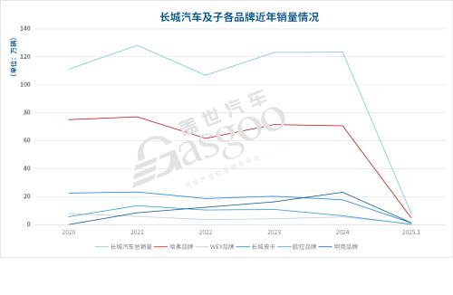 长城旗下五大品牌,除WEY品牌销量继续保持不错增长,其他品牌均出现了两位数下滑。