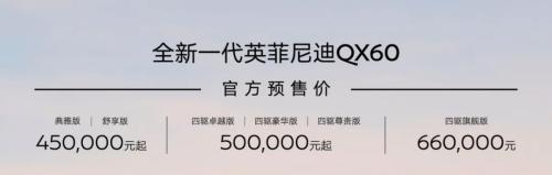此次全新QX60预售价格分为三个区间,分别是两驱预售45万元起,四驱车型预售50万元起,而顶配四驱旗舰版则达到66万元。相比之前进口车型,国产后QX60入门车型价格有所下调,但是考虑到原车型优惠幅度,所以QX60的预售价格仍比消费者之前预期偏高。