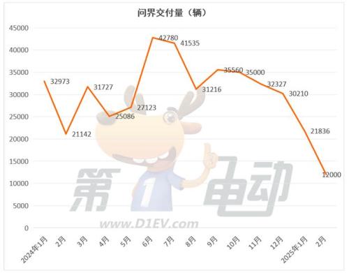 由于智界R7 2月交付8,748辆,环比大降超30%,我们预估问界2月销量仅12000辆左右,与1月相比几近腰斩。