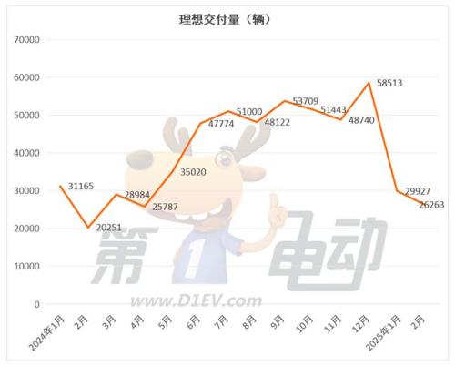 2月,理想汽车交付新车26,263辆,同比增长29.7%,但环比下滑超12%。为了及时挽救市场份额,理想于2月28日推出限时购车优惠政策,2025年2月28日至3月31日(含)订购理想L系列,可至高立省3.8万元,其中尾款至高立减1.6万元,3年0息金融方案最高节省利息2.2万元。