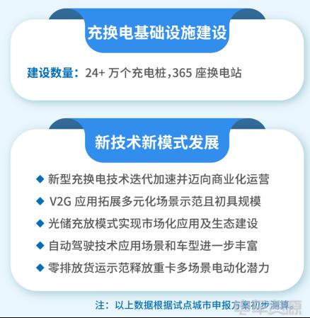 第二批试点提出了具体的预期目标,计划在公务用车、出租车、城市公交车等多个领域新增推广新能源汽车超过25万辆。在技术发展上,强调新型充换电技术商业化运营、V2G应用场景拓展、光储充放模式市场化等,丰富自动驾驶技术应用场景,挖掘重卡电动化潜力,推动新能源车向更智能化、多元化方向发展。