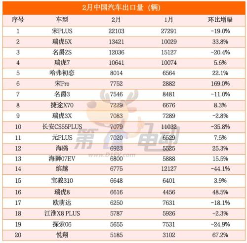 而曾经在榜的特斯拉,旗下两款热门车Model 3和Y出口量环比均大幅下滑。这是因为继1月特斯拉将Model 3和Y大批量用于出口,而2月特斯拉则将这两款车的供应重心转移到中国市场,按照特斯拉市场供应规则,预计3月这两款车的出口量将再次提升。