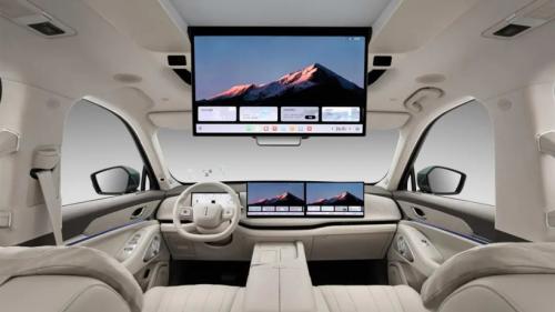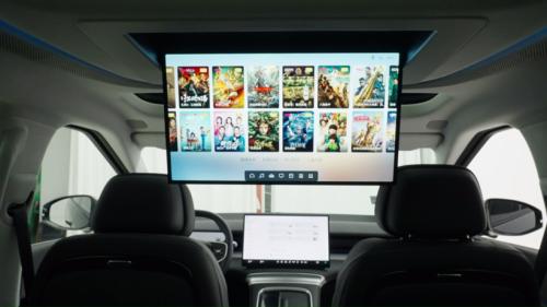 极氪009的后排屏幕位于车顶,而领克Z10的后排屏幕则位于前排座椅后方。