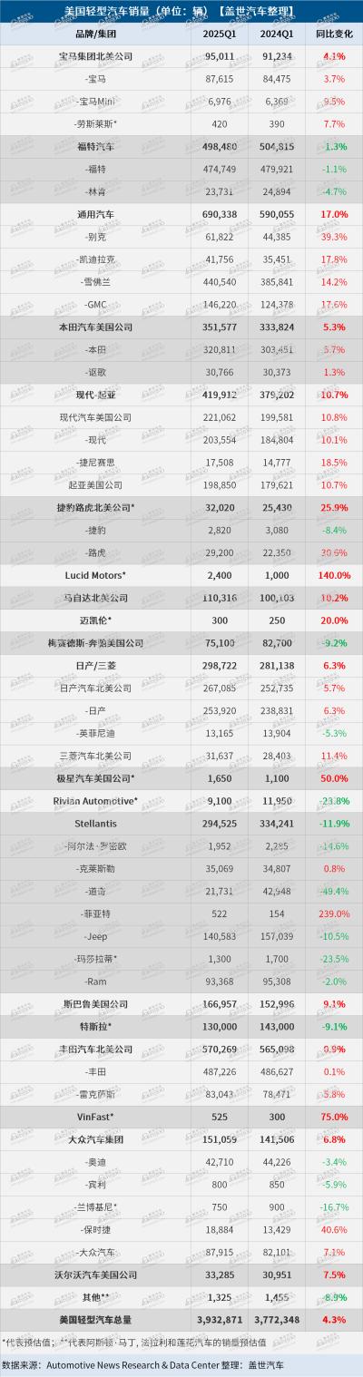 美国Q1车市:通用汽车增17%,Stellantis降12%