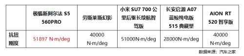 第五,新阿尔法S5同级抗扭刚度第一,达到天花板级的51897N*m/deg,比劳斯莱斯幻影40000 N*m/deg还高,高强度钢和铝合金车身占比高达81.6%,买极狐就是买安全。