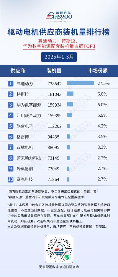 根据榜单数据来看,驱动电机供应商装机量排行榜呈现全新竞争格局。榜单显示,弗迪动力、特斯拉、华为数字能源三家企业,占据行业前三位置,标志着驱动电机领域正迎来技术驱动与生态重构的关键阶段。