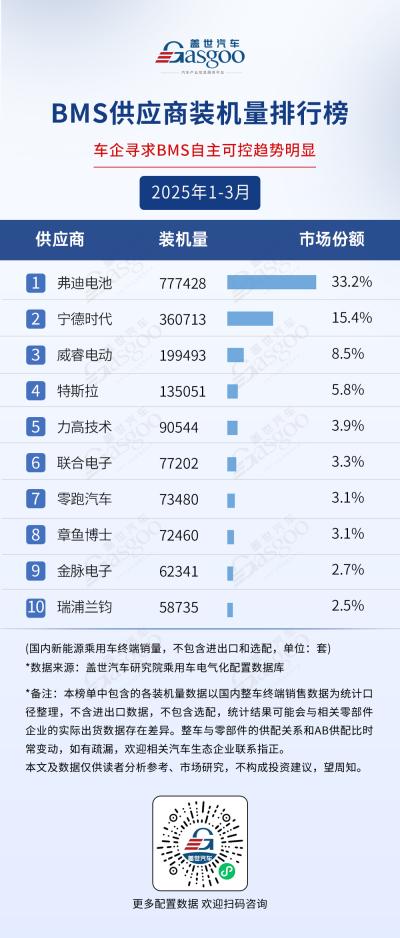 BMS供应商装机量排行榜:车企自主可控战略加速落地