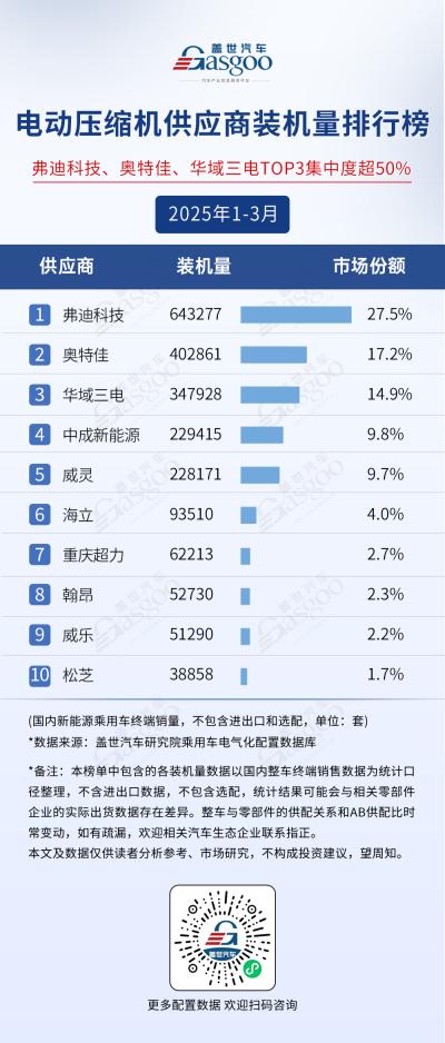 电动压缩机供应商装机量排行榜:头部阵营重构产业格局