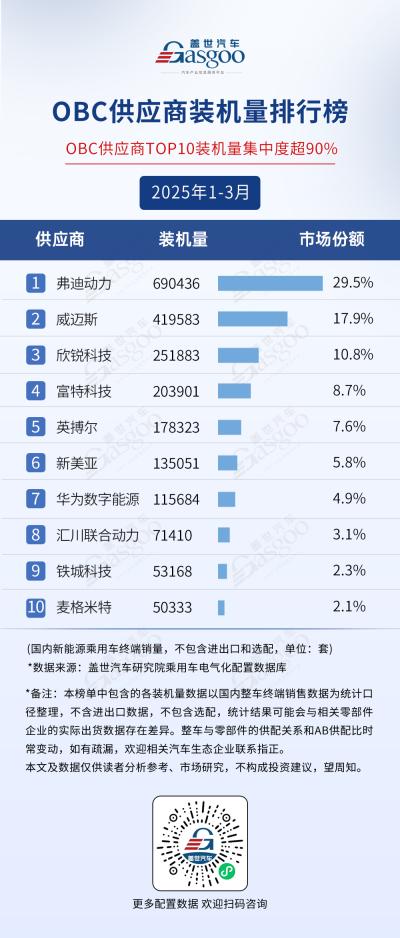 OBC供应商装机量排行榜:头部效应加剧产业集中度